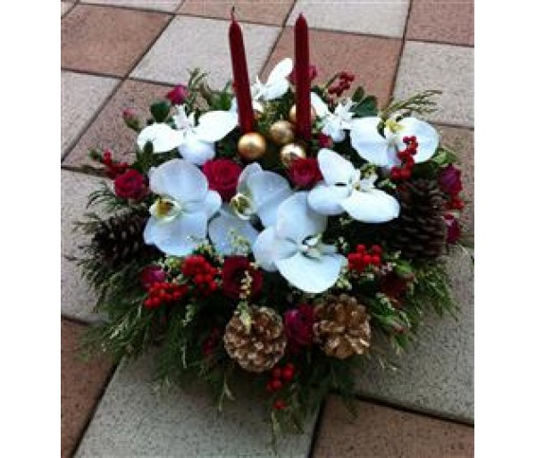 CM16 Very Merry Christmas White Orchid Wreath Display (with Candle)