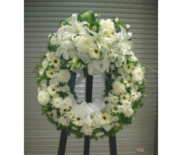 C3 WHITE MIXED FLOWERS CONDOLENCE WREATH IN ROUND