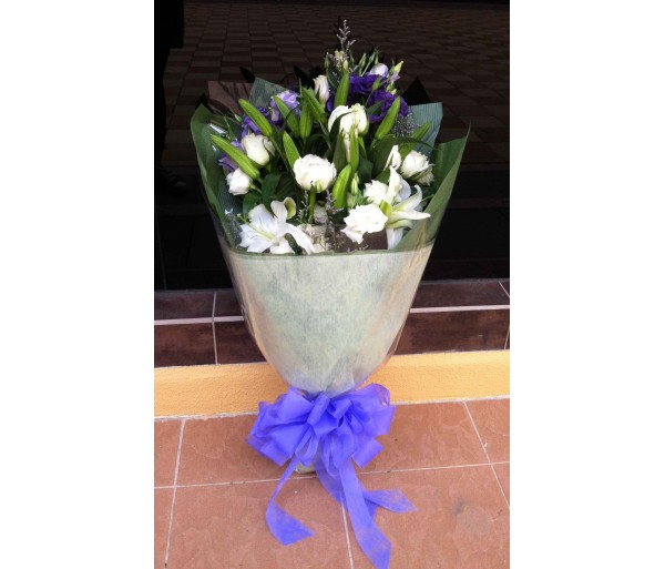 F48 WHITE LILIES WITH PURPLE MIXING FLOWERS BOUQUET
