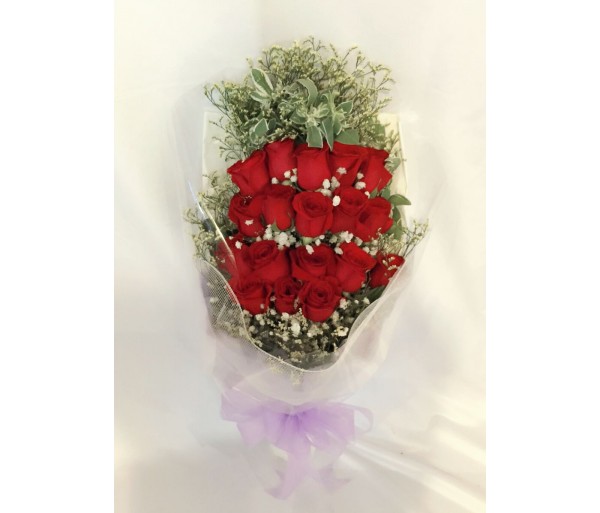 F105 18 RED ROSES BOUQUET IN LONG WRAP