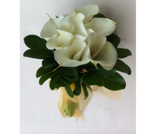 A BRIDAL BOUQUET CONSIST OF 9 PIECES OF CALLA LILIES WITH ACCOMPANYING GREENS