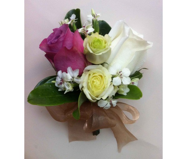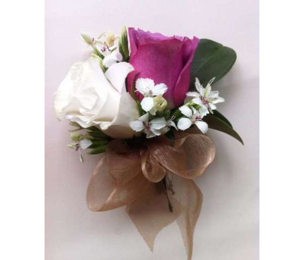CO7 WHITE AND PURPLE DOUBLE ROSES CORSAGE