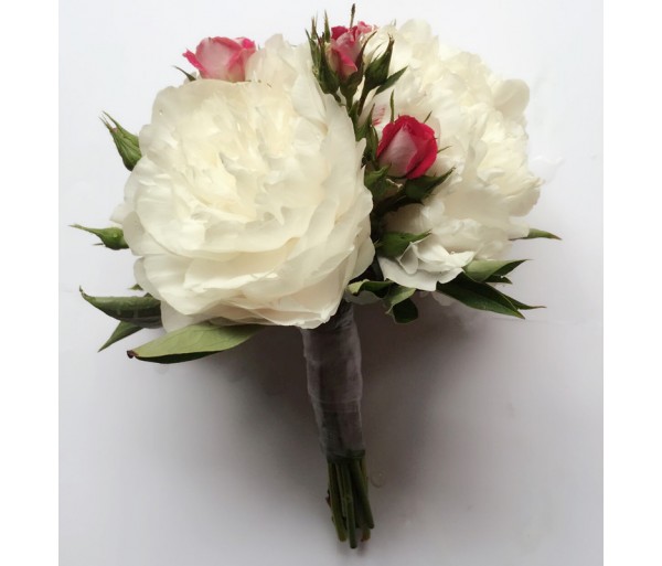 B35 WHITE PEONY WITH MINI RED ROSES BRIDAL BOUQUET
