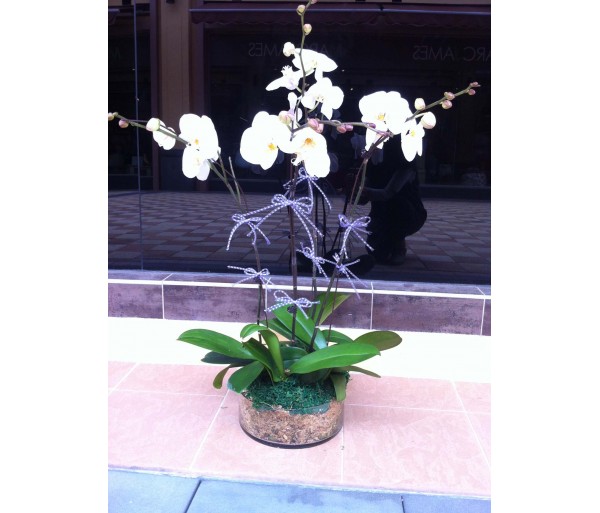 O8 4 STEMS WHITE ORCHIDS IN GLASS POT
