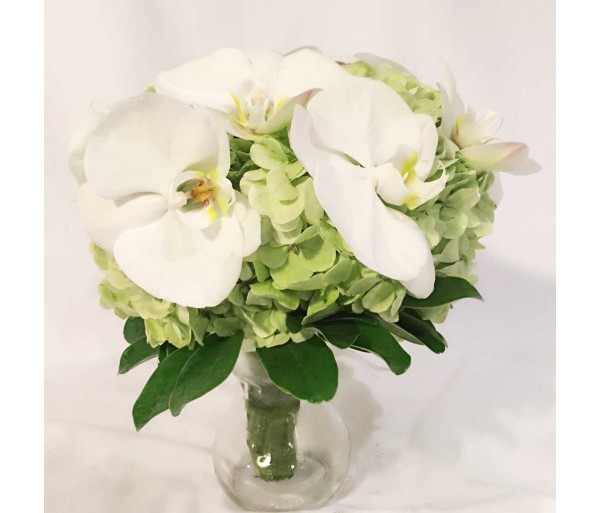 B26 GREEN HYDRANGEAS WITH WHITE ORCHIDS BRIDAL BOUQUET